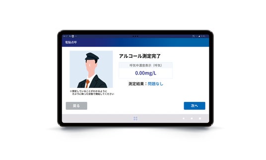 今回機能提供を開始する業務前自動点呼では、ドライバーはタブレットを操作するだけで点呼を完結でき、顔認証・アルコール検査・体温および血圧測定・健康状態の申告・車両点検結果・指示事項確認など、必要な項目を自動で判定・記録します。