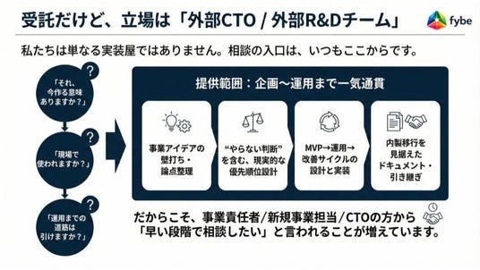 受託だけど、立場は「外部CTO / 外部R&Dチーム」| fybe