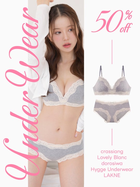 もうすぐ成人になる女性の皆様と、韓国のアンダーウェアに関心を寄せてくださっているamoodユーザー様に、高品質なアンダーウェアを半額というお得な価格で購入いただけるよう、ブランド側とたくさんのコミュニケションを取りながら今回の企画を準備しました。シームレスやワイヤレスから、レース・フラワーパターン、ナチュラルフィットやボリュームアップまで幅広く取り揃えていますので、ぜひamoodでK-アンダーウェアをチェックしてみてください!