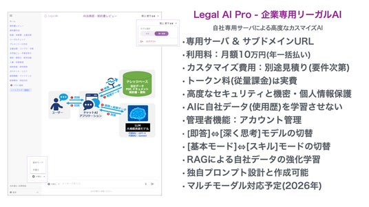 Legal AI 株式会社(本社:東京 代表取締役 渡部 薫)は、法律業務に必要なあらゆるプロンプトとAI機能を統合した、法務特化型LLM「Legal AI Pro」の提供を開始しました。