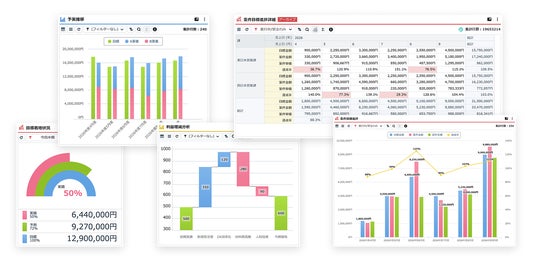 「JUST.DB」の集計機能が最大2,000万件の大規模データに対応し、全社規模の分析基盤へと進化しました。また、集計の表現力も大幅に強化しています。集計表のセル色を自動で変える「ハイライト」機能により、重要な指標の変化を一目で把握可能にします。さらに、売上などの増減要因を可視化する「ウォーターフォール」や、異なる指標を重ねる「複合グラフ」にも対応しました。数字の羅列では見落としがちな傾向を、直感的なビジュアルで可視化します。こうした高度な集計も、生成AIによる設計機能「JUST.DB Blueprint」に「エリア別の売上推移が見たい」と指示するだけで、最適なグラフや表を即座に提案します。Excel(R)では設定が煩雑な複合グラフや要因分析も自動生成により迅速化し、次のアクションに向けた意思決定を支援します。