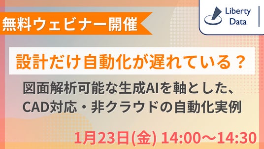 あらゆるデータの資産化とデータ駆動型経営の実現に向けたサービスを提供するLiberty Dataは、「設計だけ自動化が遅れている?図面解析可能な生成AIを軸とした、CAD対応・非クラウドの自動化実例」と題したウェビナーを開催いたします。