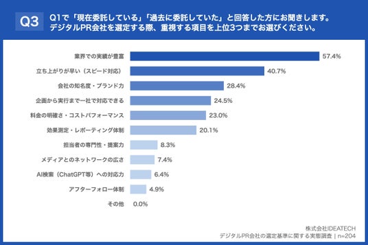 Q2. 調査PR会社を選ぶ際、最も重視すべきポイントは何ですか?
