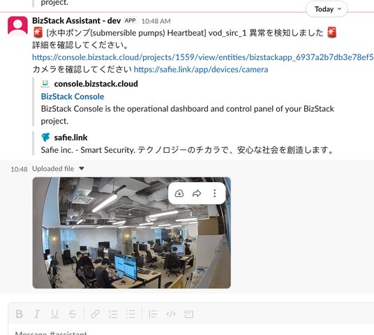 BizStack Assistant上でのアラート動画連携機能イメージ