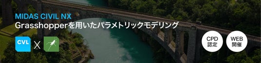 建設・土木構造解析ソリューションを提供するマイダスアイティジャパン株式会社(所在地:東京都千代田区、代表取締役社長:申 定鎬)は、土木分野における設計・解析業務の高度化と効率化をテーマに、3次元構造解析・耐震設計プログラム「MIDAS CIVIL NX」と、ビジュアルプログラミングツール「Grasshopper」を活用したパラメトリックモデリングおよび設計・解析自動化技術を紹介するWEB技術セミナーを、期間限定でオンデマンド配信いたします。