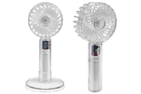 特徴:透明なボディが涼しさを引き立てる、クリアハンディファン登場!ハンディ&スタンドの2WAY仕様、弱風から強風まで3段階で風量調節が可能。手持ちでも使えるから使用する場所やシーンの幅が広がって利便性抜群!