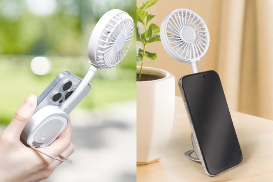 特徴:マグネット・手持ち・卓上の3WAYで使える多機能フレキシブルファン。マグネットでスマートフォンに簡単装着!MagSafe非対応スマホは付属のメタルリングを貼り付けて使用可能に!デスクやキッチン、車内、アウトドアなど幅広いシーンで活躍します。フレキシブルアーム付きで角度調整も自由自在。必要な場所にピンポイントで送風できます。