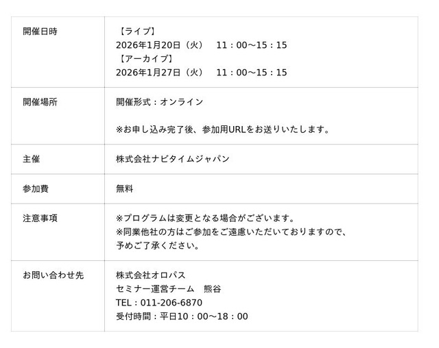 SEOツール「パスカル」の開発・提供を行う株式会社オロパスは、2026年1月20日(火)に、株式会社ナビタイムジャパン主催のオンラインカンファレンス、ブランディング×第一想起『知っている』から『選ばれる』へ。に登壇いたします。