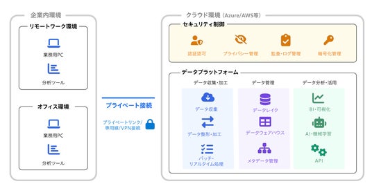 こうした背景を踏まえ、当社ではこれまで複数の企業に対して行ってきたプライベート接続構成の実績をもとに、セキュリティを担保しながらデータ活用を進められる専用ネットワーク型のデータ基盤構築を体系化し、新たな支援サービスとして提供を開始しました。