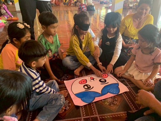 なかよし学園 事務局長の中村里英が一人ひとりに丁寧に関わり、子どもたちだけでなく大人も輪に加わりながら、成功体験を積み重ねました。避難民収容寺院を管轄する僧侶からは、次のコメントが寄せられています。