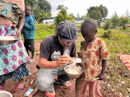 難民の方々に日本の生徒児童が栽培したお米でおにぎりを振る舞うなかよし学園