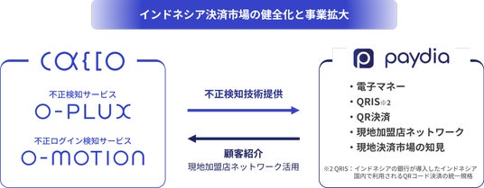 国内導入実績No.1※1の不正検知サービスを提供し、安全なネット通販のインフラづくりに貢献するかっこ株式会社(本社:東京都港区、代表取締役社長 : 岩井 裕之、証券コード:4166、以下 Cacco)は、ジャカルタを拠点とするフィンテック企業で、デジタル決済ソリューションを展開するPT Datacell Infomedia (Paydia), Headquarters: Jakarta, Indonesiaと業務提携いたしました。本提携により、Paydiaが提供するデジタル決済サービスにCaccoの「O-PLUX」、「O-MOTION」が導入されることで、インドネシア決済市場における不正検知サービス展開の拡大を推進します。