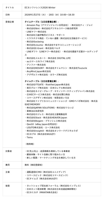 2026年の新春、ECビジネスの次なる一手を見つけ、飛躍への扉を共に開きましょう。