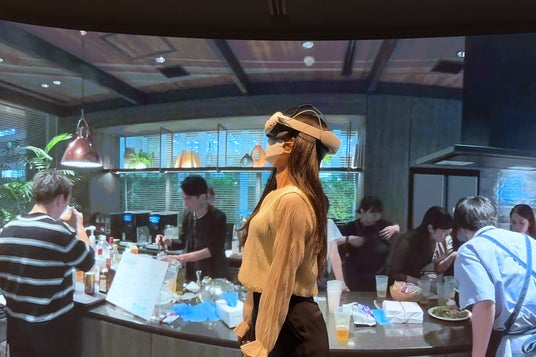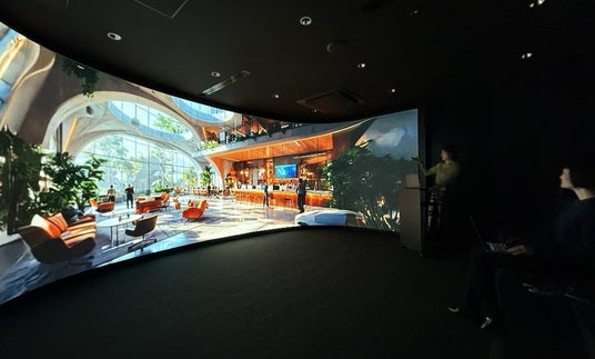 三井デザインテックが手掛けた空間デザインの360°VR映像を、複数人が同時に、現地で内覧しているかのような没入感で体験できる、新しい提案手法を確立しました。