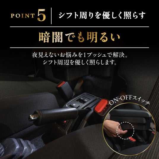 夜見えないお悩みを1プッシュで解決。シフト周辺を優しく照らします。