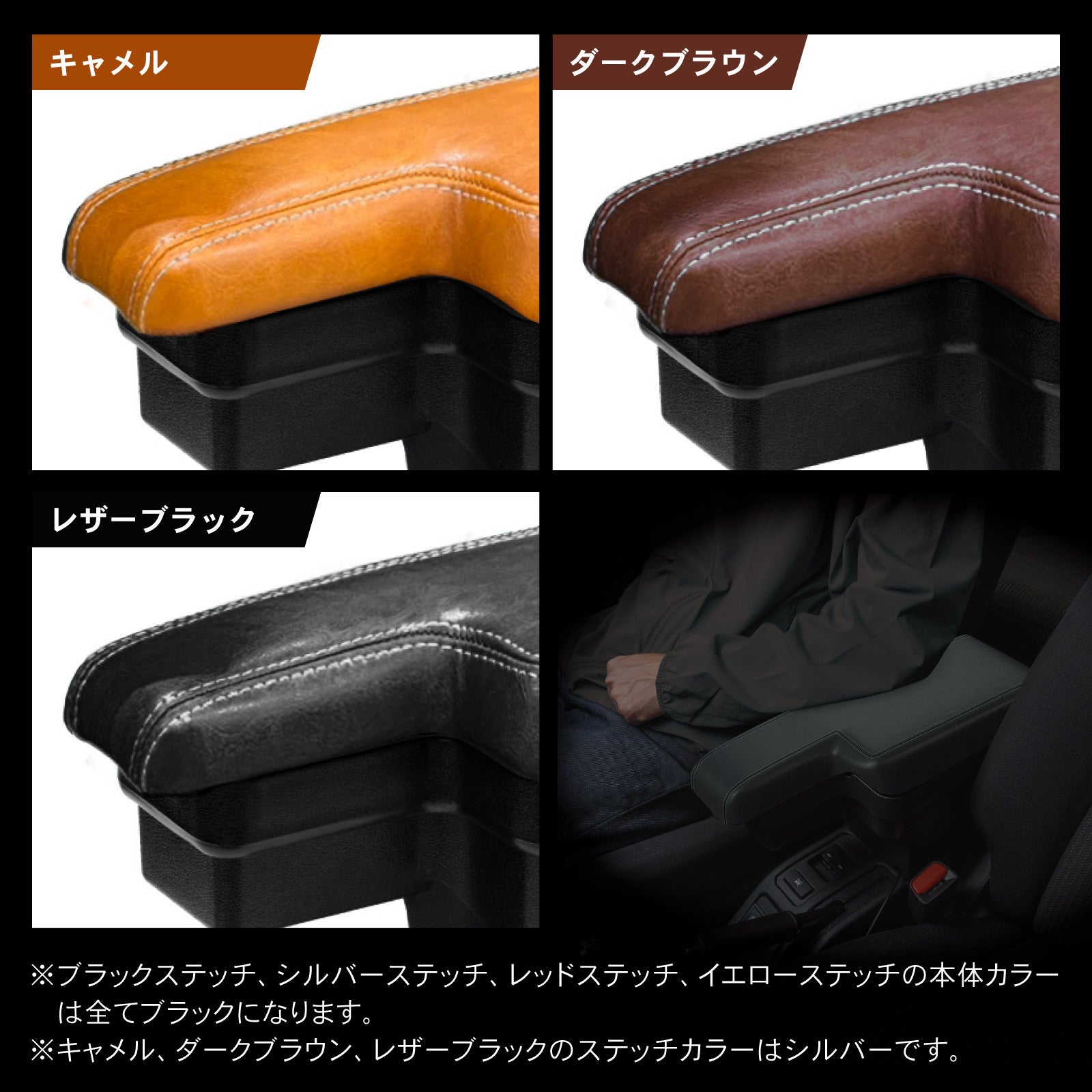 キャメル、ダークブラウン、レザーブラックのステッチカラーはシルバーです。