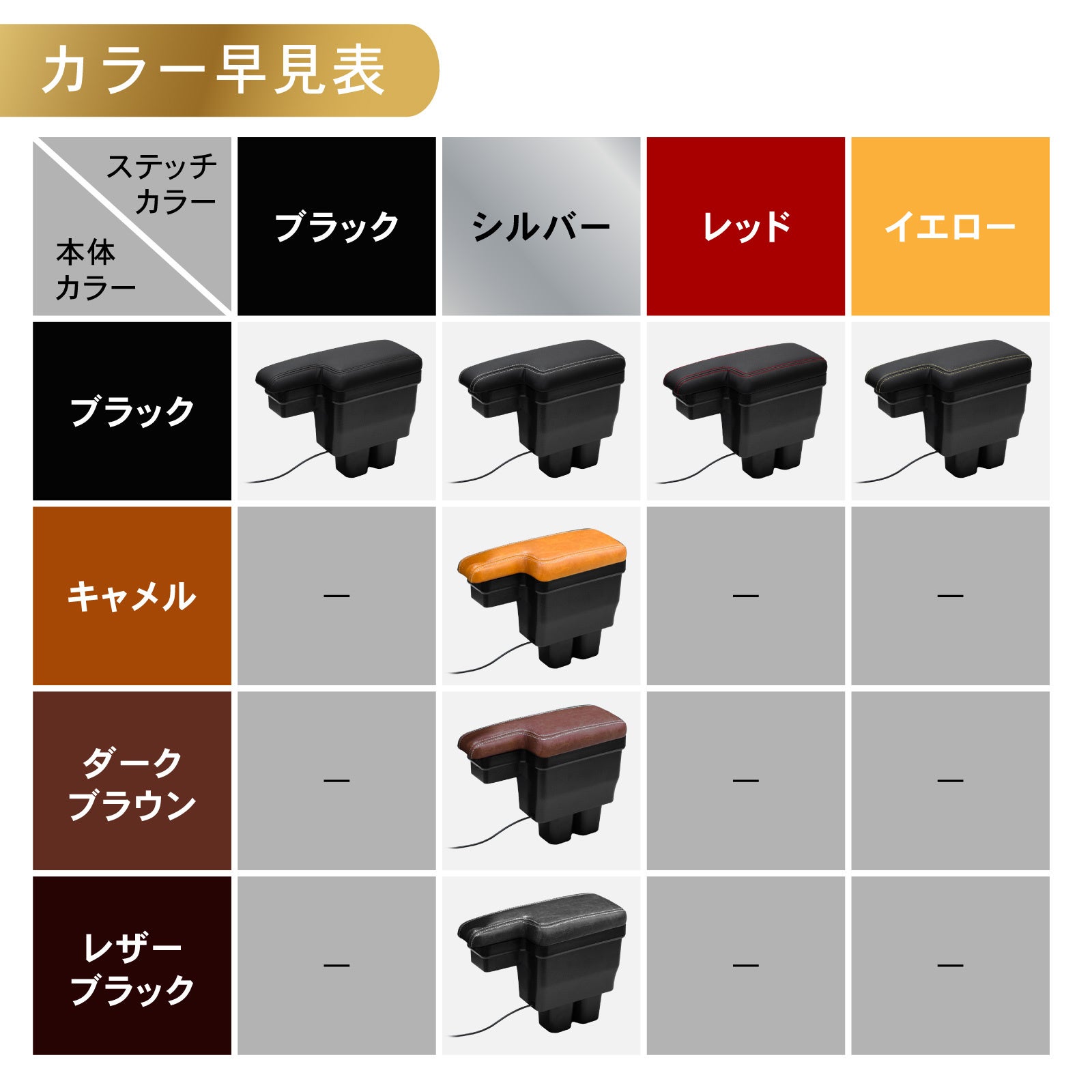 ※ブラックステッチ、シルバーステッチ、レッドステッチ、イエローステッチの本体カラーは全てブラックになります。