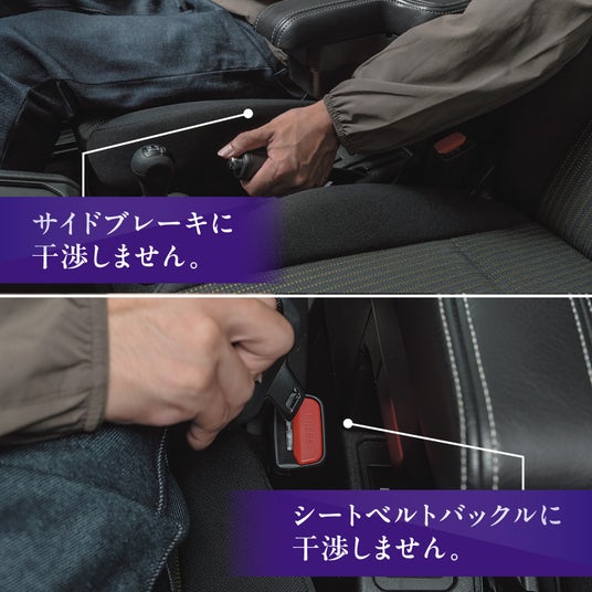 - サイドブレーキに干渉しません。- シートベルトバックルに干渉しません。