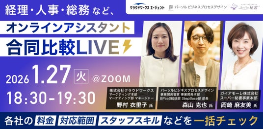 挑戦者支援をミッションに掲げるプロトスター株式会社(本社:東京都中央区、代表取締役:前川英麿)は、バックオフィス業務の効率化とリソース確保を支援する「オンラインアシスタント3社 合同比較ライブ」を開催いたします。