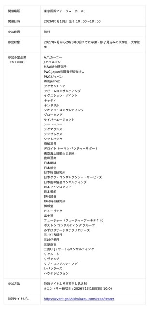 「世界で挑戦できる人材を育み、未来を創る」を掲げ、ユーザーファーストを追求したキャリアプラットフォーム「外資就活ドットコム」を運営する株式会社ハウテレビジョン(本社:東京都港区、代表取締役:音成洋介)は2026年1月18日(日)開催の28卒学生を対象とした、これからを担う次世代リーダーのための合同企業説明会「外資就活Expo」の詳細が決定したことをお知らせします。