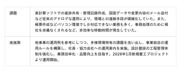 三菱地所ホームでは、2016年度よりリフォーム事業、2025年度より新築注文住宅事業にてANDPADを活用しており、今回、分譲用戸建住宅の建設事業での導入により、全社においてANDPADを活用した業務改善に取り組むこととなりました。
