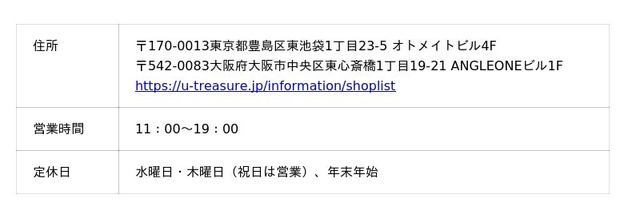 お客様のお問い合わせ窓口(ユートレジャーオンラインショップ)◆お問い合わせフォーム>> https://u-treasure.jp/contact