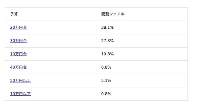 価格帯別では、20万円台のゲーミングPC が最も高い閲覧シェアとなりました。