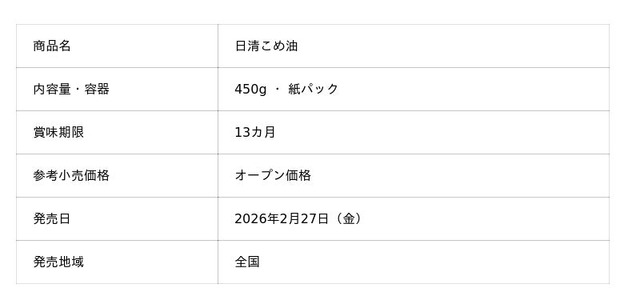 日清オイリオグループ株式会社(社長:久野 貴久)は、人気の「日清こめ油」から環境にやさしい紙パックタイプを新たに発売します。従来のプラスチックボトルやPETボトルに加え、使用後に小さく折りたたんで廃棄可能な紙パックを導入することで、容器選択の幅を広げ、生活者の多様なニーズにお応えします。
