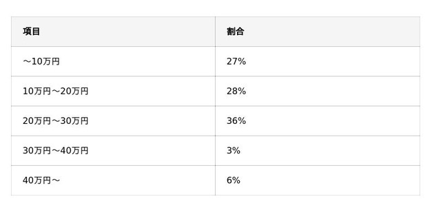 - 施術費用を「20万円~30万円」と回答した人は36%で最も多い