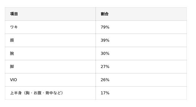 施術箇所に関する質問では、「ワキ」と回答した人が最も多く、全体の79%を占めました。