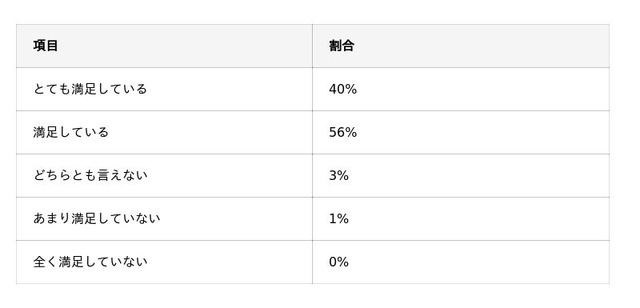 調査では、「とても満足している」と回答した人が40%、「満足している」と回答した人が56%となり、合計96%が施術に満足している結果となりました。多くの回答者が施術に対して前向きな評価を示しました。