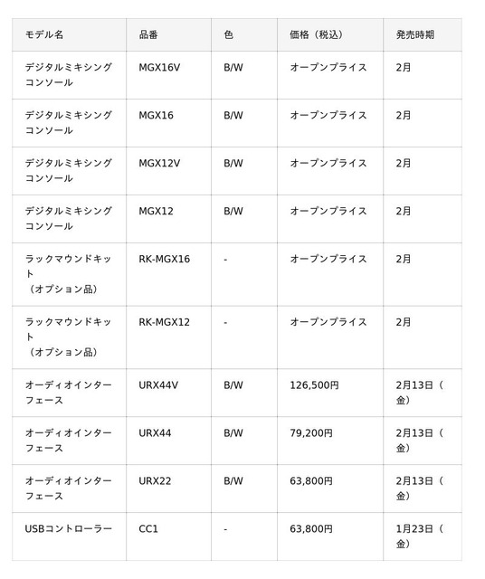 ヤマハ株式会社(以下、当社)は、幅広く活動するクリエイターに向けた音響機器の新製品として、デジタルミキシングコンソール『MGXシリーズ』とオーディオインターフェース『URXシリーズ』、USBコントローラー『CC1』を2026年1月23日(金)より順次発売します。