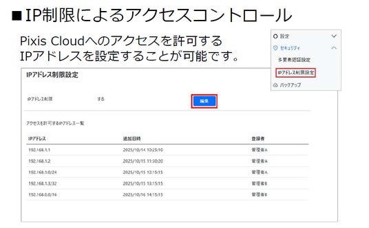 あらかじめ許可したIPアドレスからのみアクセスを可能とすることで、