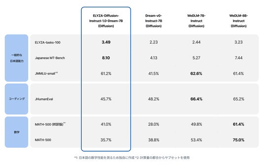 大規模言語モデル(以下、LLM)の研究開発と社会実装を進める株式会社ELYZA(代表取締役:曽根岡侑也、以下当社)は、KDDI株式会社のGPU基盤を利用して、日本語における知識・指示追従能力を強化した拡散大規模言語モデル(以下、dLLM)である「ELYZA-LLM-Diffusion」シリーズを開発し、商用利用可能な形で公開しました。本モデルの公開に併せて、デモも公開しております。ぜひお試しください。