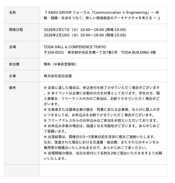 株式会社宣伝会議主催 カンファレンス|KAIGI GROUP フォーラム「Communication × Engineering」
