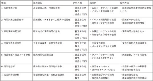 特に「夜の賑わい創出」などの施策において、時間帯別の人数推移はもちろん、『滞在が延びた結果、どれだけ宿泊や消費に繋がったか』という一歩踏み込んだ因果関係の可視化を求めています。これらのデータが精緻化されることで、より確かな根拠に基づいた『まちづくり』が可能になります。貴社のサービスが、私たちの観光戦略の羅針盤としてさらに進化・深化することを強く期待しております。