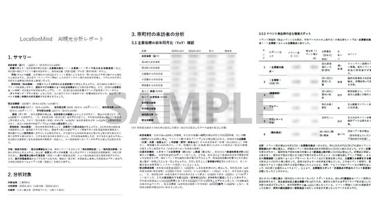 第1弾として静岡県・三重県・鹿児島県へのデータ提供を開始し、契約自治体・観光協会数は137団体となりました(2025年12月末時点)。このたび契約自治体・観光協会数が100団体を超えた節目として、本サービスを活用したAI観光分析レポート(約8頁)を自治体・観光協会向けに無料配布するモニタキャンペーンを実施します。ご希望の地域(市区町村単位)を対象に、地域のイベント情報や天候など、観光動向に影響を与え得る外部情報も参照し、分析結果の解釈に役立つ形でレポートにまとめます。観光施策の立案や効果検証、地域経済の可視化に、すぐにお役立ていただけます。