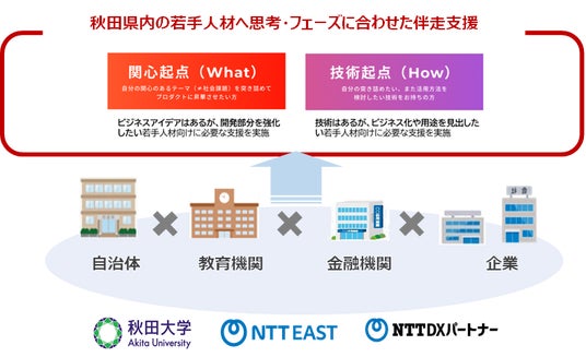 本プログラムは、経済産業省令和6年度「未踏的な地方の若手人材発掘育成支援事業費補助金(AKATSUKIプロジェクト)※2」に採択され、「どんな一歩も、未来への挑戦だ」をテーマに、教育機関・自治体・金融機関・企業がコンソーシアムを形成し、秋田県内の独創的なアイデアや技術を持つ若手人材を支援するプログラムを企画・運営しています。