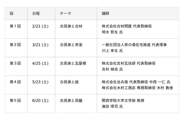 知る: 古材、茶室、瓦、庭、民藝。各分野の専門家が「建物の価値」を多角的に解説。