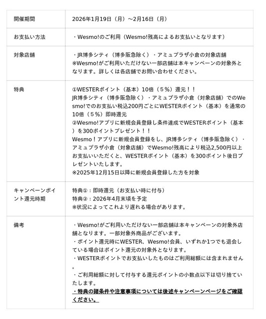★「JR博多シティ・アミュプラザ小倉 Wesmo!キャンペーン」について