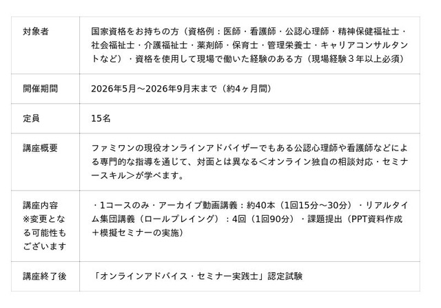 ■オンラインアドバイザー養成講座「ファミワンアカデミー」の概要