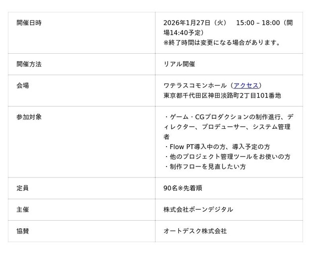 Flow PTをすでに導入している方はもちろん、これから導入を検討されている方、さらには他のプロジェクト管理ツールをお使いの方にとっても、ご自身の制作環境の構築や運用のヒントとなる貴重な機会です。ぜひ、この機会にご参加ください。