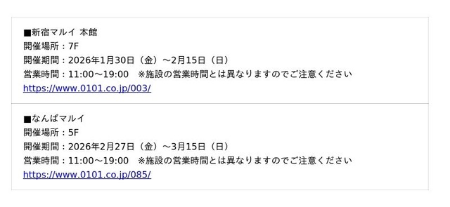 新宿マルイ 本館、なんばマルイ 他で巡回開催します♪
