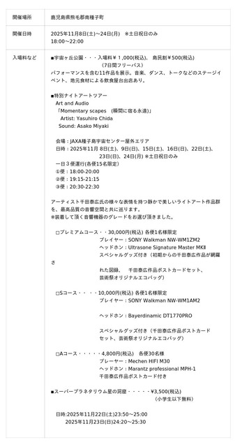 Instagram : https://www.instagram.com/space.art.tanegashima/