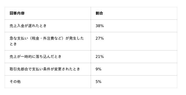 最も多かった回答は**「売上はあるが入金が遅れたとき」**でした。