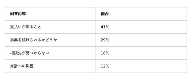 資金繰りが厳しいと感じた際、最も不安だったこと