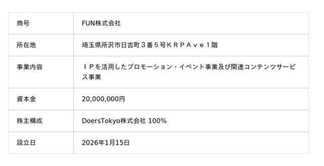 ファン活市場におけるリアルでのプロモーション及びイベントニーズが拡大している中、DoersTokyo社ではより多くのファンに向けてのプロモーション、イベントニーズに対応することを目的とした、100%子会社の設立を決議いたしました。