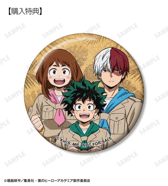 当商品を1BOX、または単品にて1BOX相当数ご注文ごとに、予約購入特典として「描き下ろし 緑谷出久・麗日お茶子・轟焦凍 サファリルックver. グリッター缶バッジ AMNIBUS&アニメイト限定特典」を付属いたします。