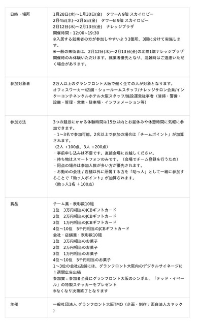 「オフィスポーツCHAMPIONSHIP」特設サイト:https://workerevent.grandfront-osaka.jp
