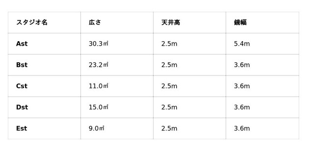 ・ スタジオ詳細一覧